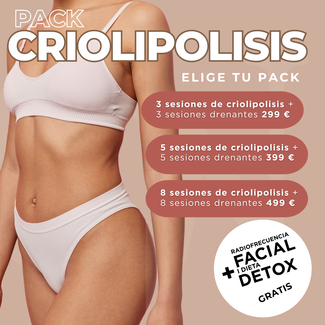 ¡Packs especiales de Carla Nogués! Obtén tu pack criolipolisis de 30 minutos de duración + drenante con dieta DETOX y radiofrecuencia GRATIS🎉